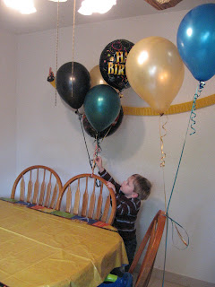 Mike had a birthday coming up so I thought real long and hard about what kind of cake I wanted to make him. I decided a R2D2 cake would be great. His sister was in town so she kept the kids busy while I decorated it. I decided that sine I was making a cake we should so a little party too. The boys loved the balloons and we all had a great time.